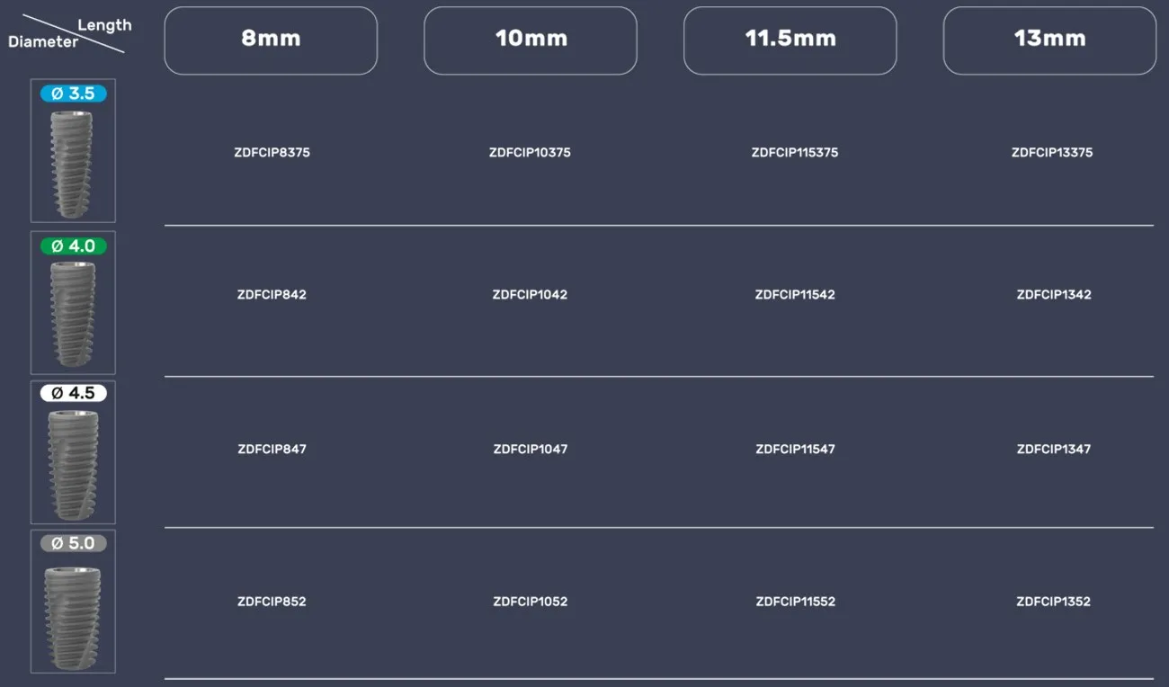 - طراحی رزوه (نخ) منحصربهفرد: با برش و متراکم کردن استخوان، پایداری اولیه (Primary Stability) استثنایی را حتی در استخوانهای با کیفیت پایین فراهم میآورد.